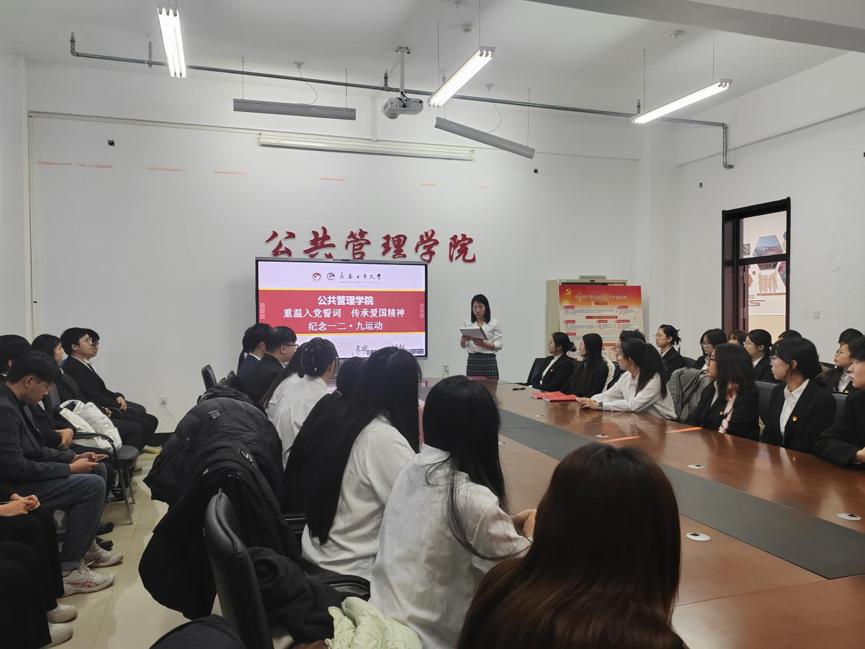 新闻网讯(通讯员 陈辛妮)为纪念“一二·九”运动九十周年,教育引导青年党员坚定政治信念、强化使命担当,12月9日中午,学院在北湖东区主楼402党员活动室组织开展老党员重温入党誓词、新发展党员入党宣誓仪式。会议由研究生第二党支部副书记陈辛妮主持,学生党员代表、新发展党员、入党积极分子代表参会。