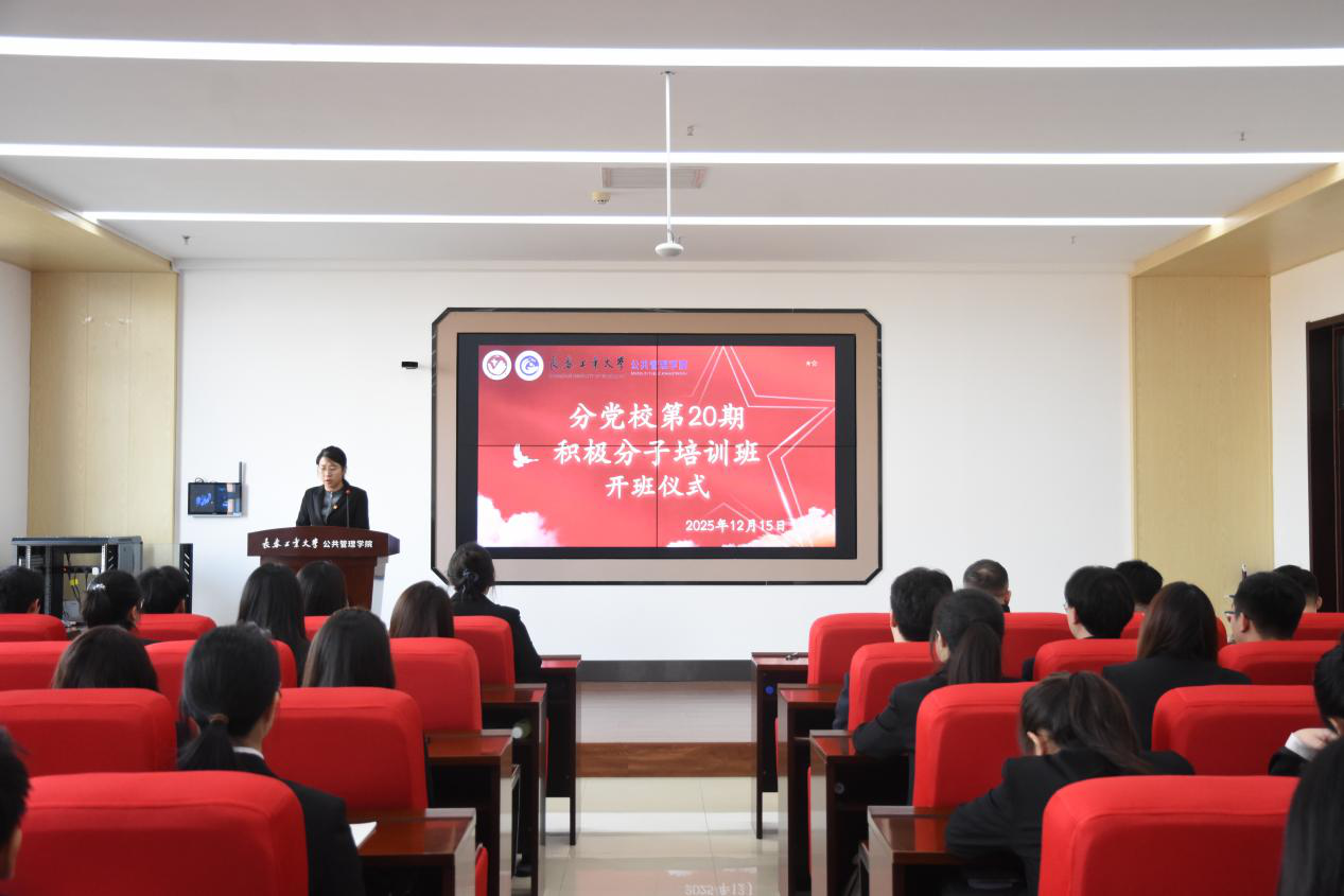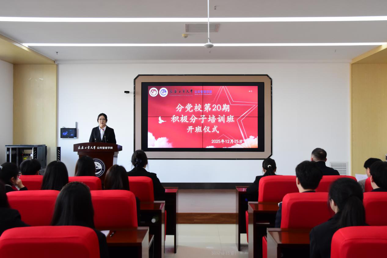 学院党委书记于洪致辞,他深刻阐明了入党积极分子培训的重要意义与现实紧迫性。他指出,当前国内外形势复杂多变、风险挑战交织,加强党员队伍建设、提升党员政治素质与综合能力,是新时代党的建设核心任务,更是党带领人民应对风险、推动事业发展的重要保障。他勉励全体入党积极分子,要倍加珍惜此次培训契机,以高度政治自觉投入学习,系统研读党的创新理论、百年党史与党章党规,在理论滋养中锤炼党性、坚定理想信念,深刻领悟“两个确立”的决定性意义;坚持学用贯通,将所学与学习科研、校园实践、社会服务结合,在实践中提升素养、增强本领,以实际行动向党组织靠拢,成长为合格的党员后备力量。