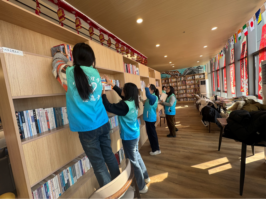 活动现场,党员同志们热情高涨、分工协作,有序开展各项志愿服务。大家俯身细作,精心修补破损书籍,按照规范科学分类、整齐上架,让每一本旧书重焕生机;同时认真清扫阅读空间,细致擦拭书架桌椅、调试灯光照明,用心打造整洁温馨、舒适雅致的阅读环境。在忙碌的身影中,书籍重拾“生命力”,图书馆的每个角落都焕然一新。党员们以实际行动诠释初心使命,在志愿服务中锤炼党性修养,在无私奉献中彰显青年党员的责任与担当,让雷锋精神在墨香氤氲的图书馆里静静流淌、熠熠生辉。