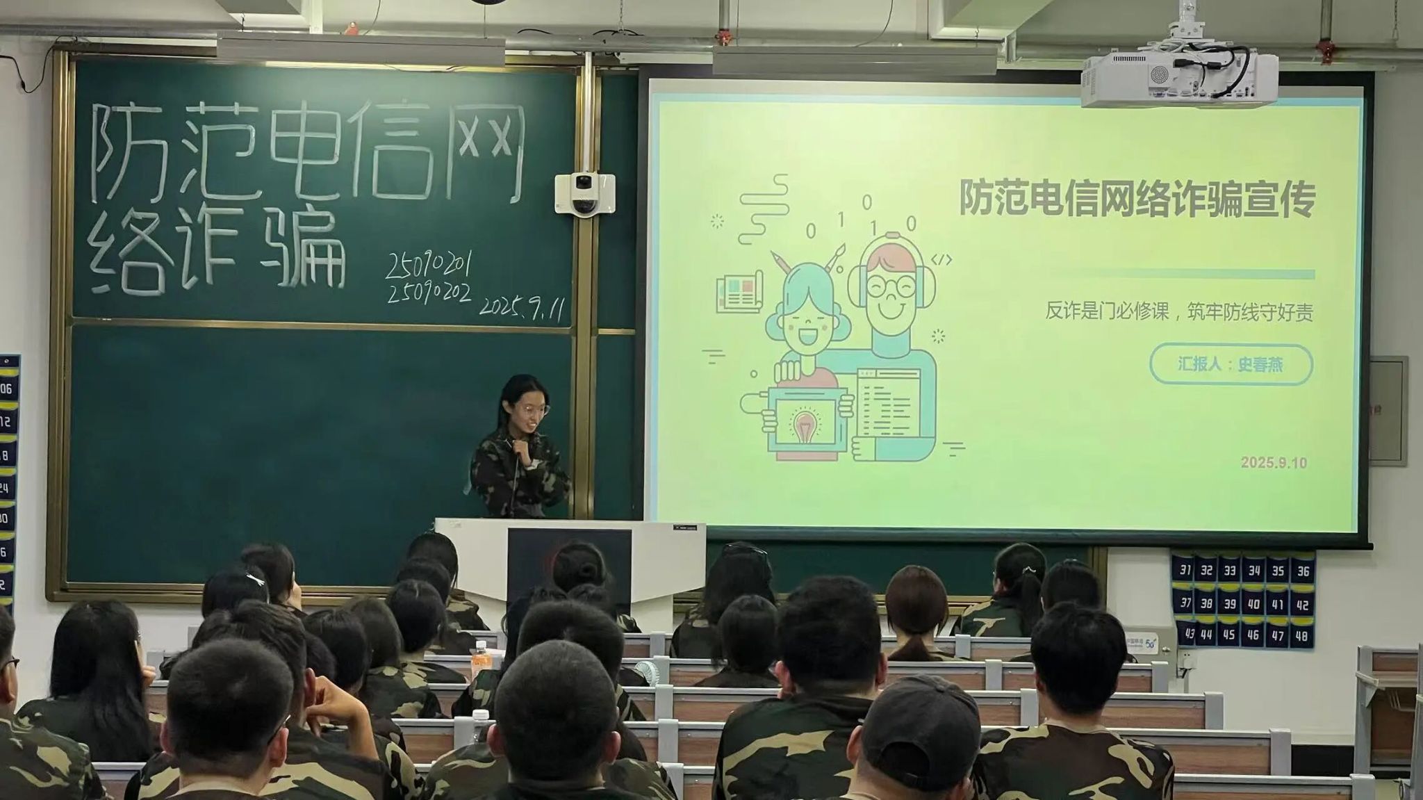 为切实增强学生安全防范意识,有效遏制电信网络诈骗案件发生,9月11日晚,公共管理学院于北湖东校区主楼201等教室组织2025级各班有序开展新生防范电信网络诈骗专题学习活动。