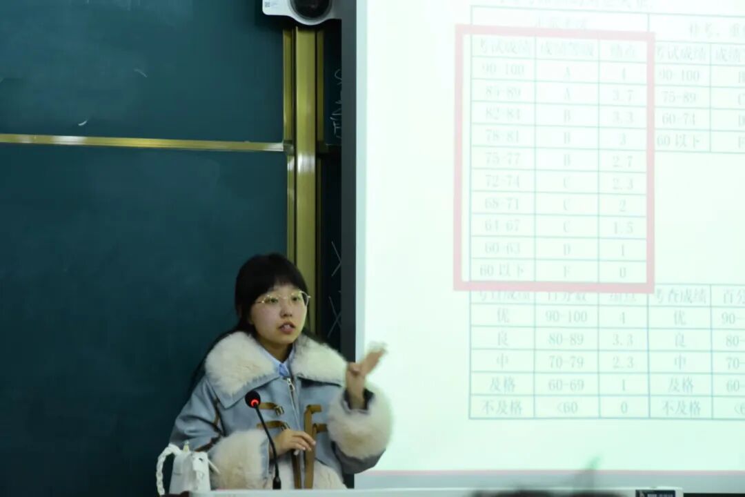 “高中时没怎么听过‘学分绩点’吧?这可是大学的‘核心生存技能’!”张新雨学姐以自身经验开篇,用接地气的表达拆解学分、绩点的关键逻辑,没有晦涩术语,全是实用干货。她现场用表格算“直观账”,把不同课程对总绩点的权重差异摆得明明白白,还手把手带新生实操查询绩点。
