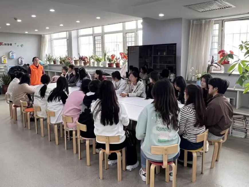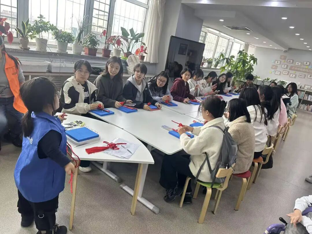 总会工作人员现场讲述于海波会长创会故事、中国结编织工艺,以及协会通过组织残疾人编织售卖中国结缓解其困境的模式,让同学们更懂残障手艺人的不易,也更明晰助残志愿的意义。