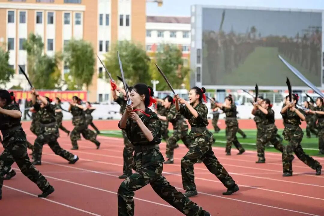在“铁血玫瑰”女子500人大刀操表演中,公管姑娘们手握大刀,身姿矫健,伴随着铿锵的节奏,挥刀、劈砍、收势一气呵成。刀刃划破空气的声响与整齐的脚步声交织,气势如虹,尽显青春锐气。