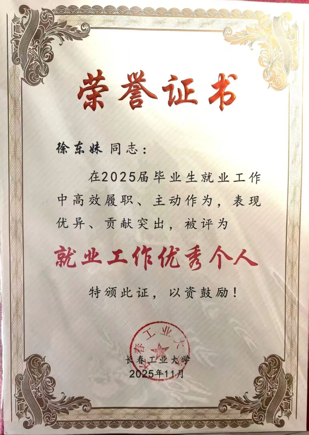 新闻网讯(通讯员 刘美惠)为系统梳理2025届毕业生就业工作成效、统筹谋划2026届毕业生就业重点任务,我校于11月3日在南湖校区学术报告厅召开2025年就业工作会。学院荣获“就业工作先进集体”称号,徐东妹、崔元慧、哈那提别克·米乃三位教师荣获就业工作优秀个人。