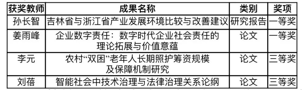 新闻网讯(通讯员 沈彤)2025年11月14日,第十五届吉林省社科优秀成果奖获奖名单公布,我院教师在本次评奖中创造佳绩,共获4项奖励,其中一等奖2项,三等奖2项。具体获奖名单如下。