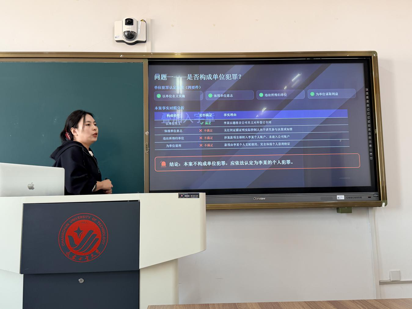 在本科生刑法课堂,刘宇律师以自己代理的一起涉黑案件为切入点,将刑法总则中“故意”与“过失”概念,通过行为人的主观心态、客观环境及证据链条层层建构,让理论从法条走入现实。